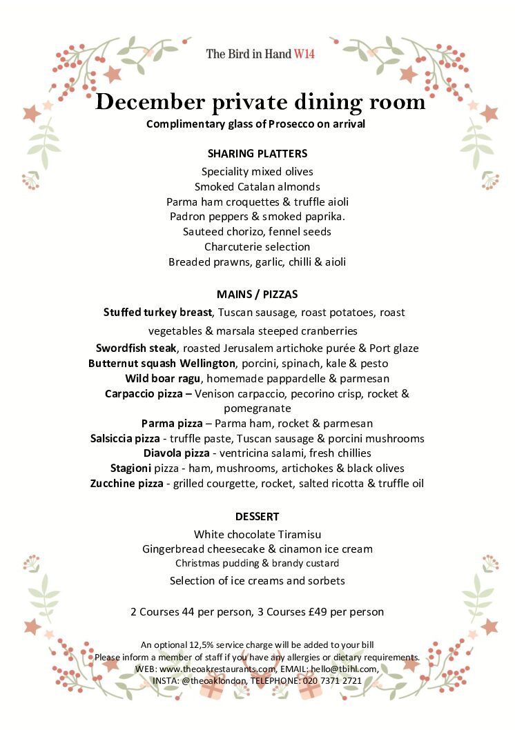 From Tuesday 10th to Tuesday 17th (excluding Monday 16th) we will be open for lunch from 12pm